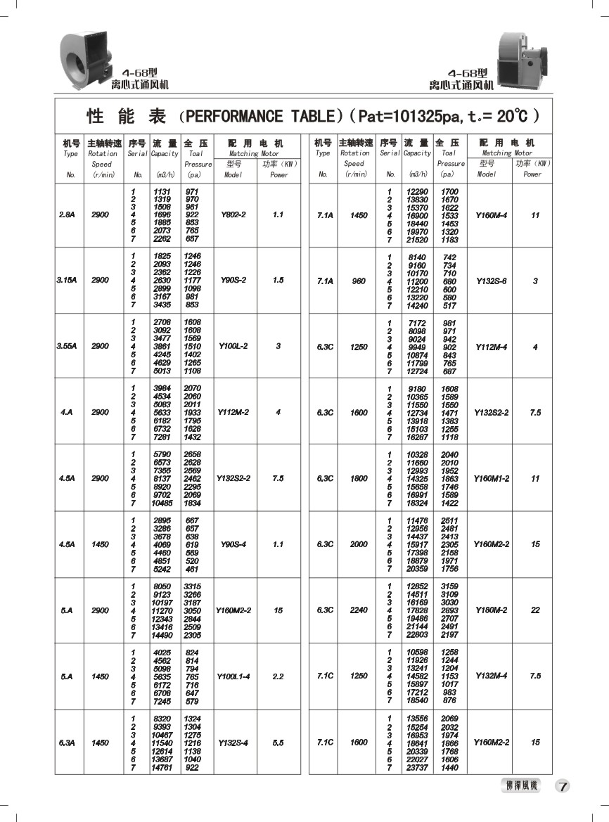 本公司生產(chǎn)的一般離心通風(fēng)機(jī)有4-68型、4-71型、4-72型、4-79型、5-90型等型號。